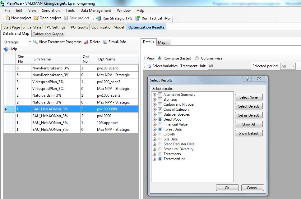 | Description | När man väljer vilka resultatvariabler man vill se under Optimization Results > Details så sparas inte valet av variabler för projektet utan det "ärvs" från det senast öppnade PlanVis-projektet. | ||||