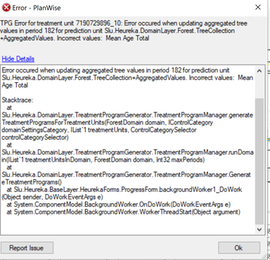 | Description | TPG not completing. Error was thrown in TreeCollection+AggregatedValues in period 182 whenMean Age total became larger than 1000. | ||||