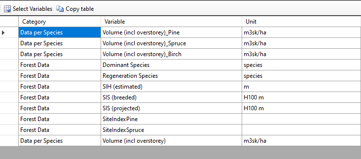 | Description | See uploaded image (volume in the last row is from the result category forest data). | ||||
