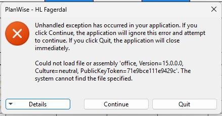 | Description | "Could not load file or assembly 'office ...." see screenshot. In view report panel | ||||