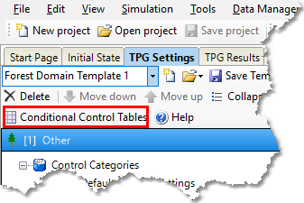 In PlanWise, the control tables are shown under the “TPG-settings” tab.