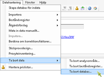 Du kan ta bort hela databaser via menyn Datahantering > Ta bort databas...